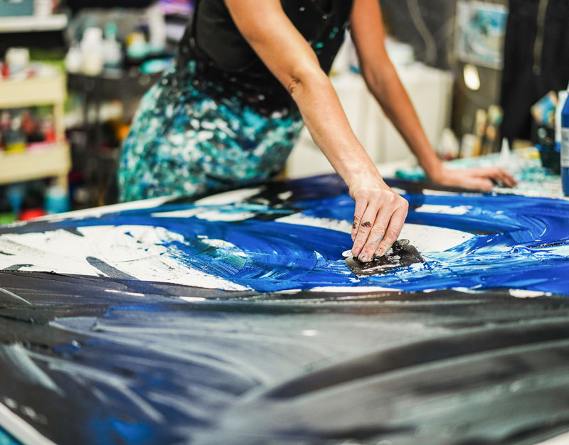 I like to share my knowledge and experience with others and therefore offer painting courses and workshops for everyone, regardless of previous knowledge. In my courses I emphasise an informal atmosphere in which everyone can feel comfortable and free.